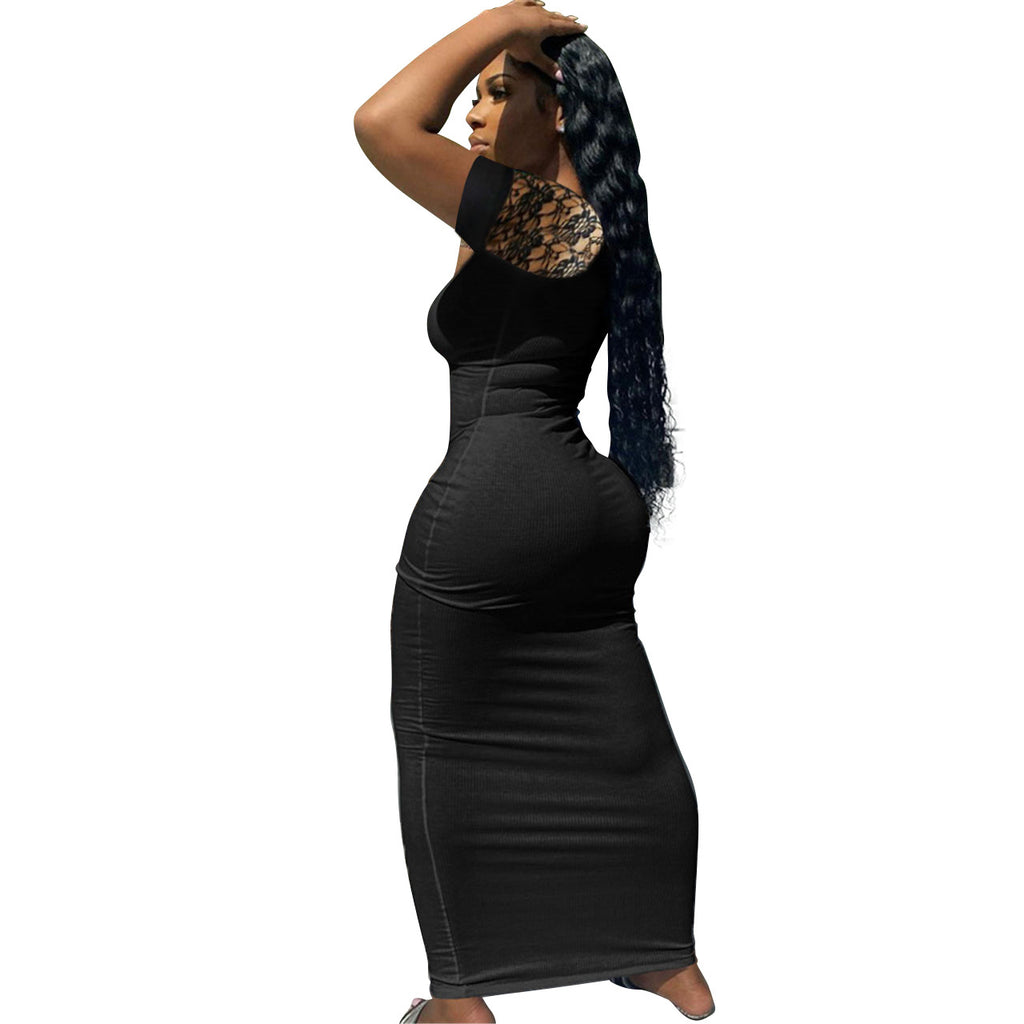 V-neck Lace Stitching Short Sleeve Slim-Fit Sexy Dress