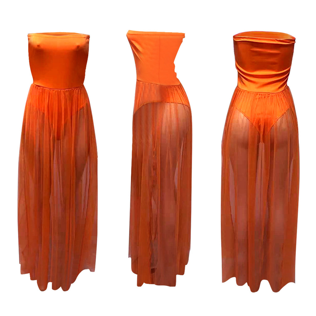 Summer Chest-Wrapped One-Piece Sexy Mesh See-through Dress