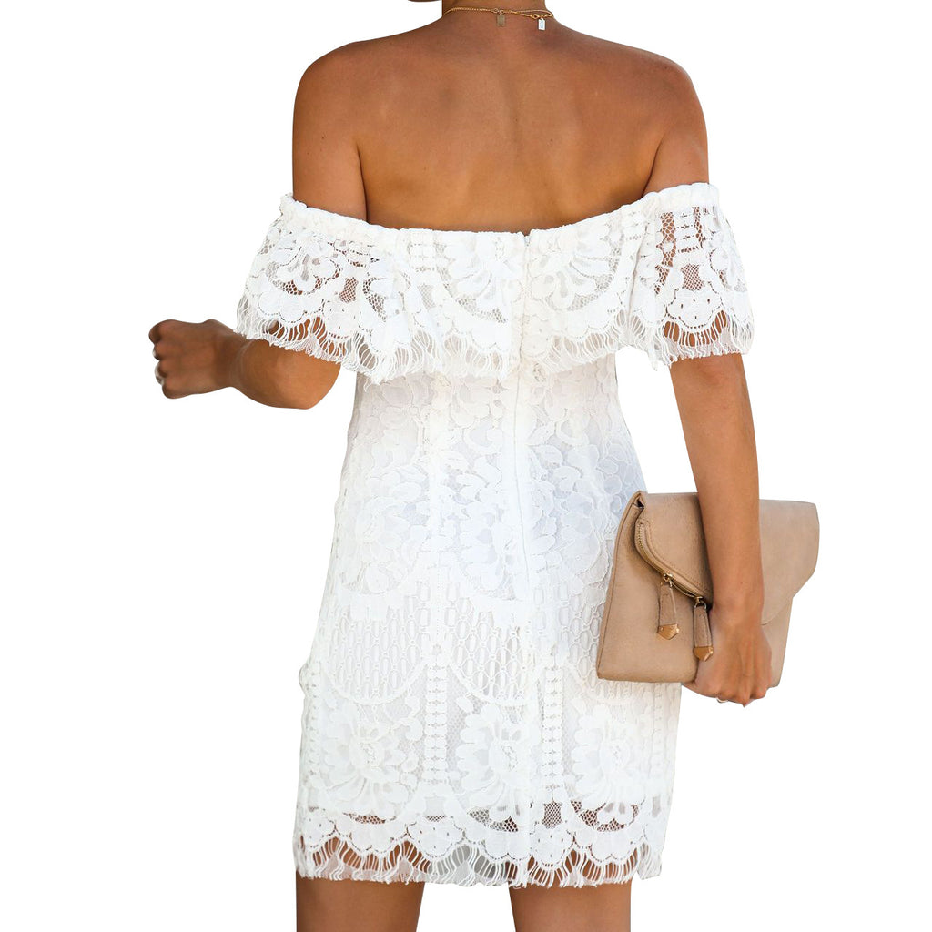Spring and Summer Lace Sexy Temperament off-Shoulder Eyelash Lace Dress