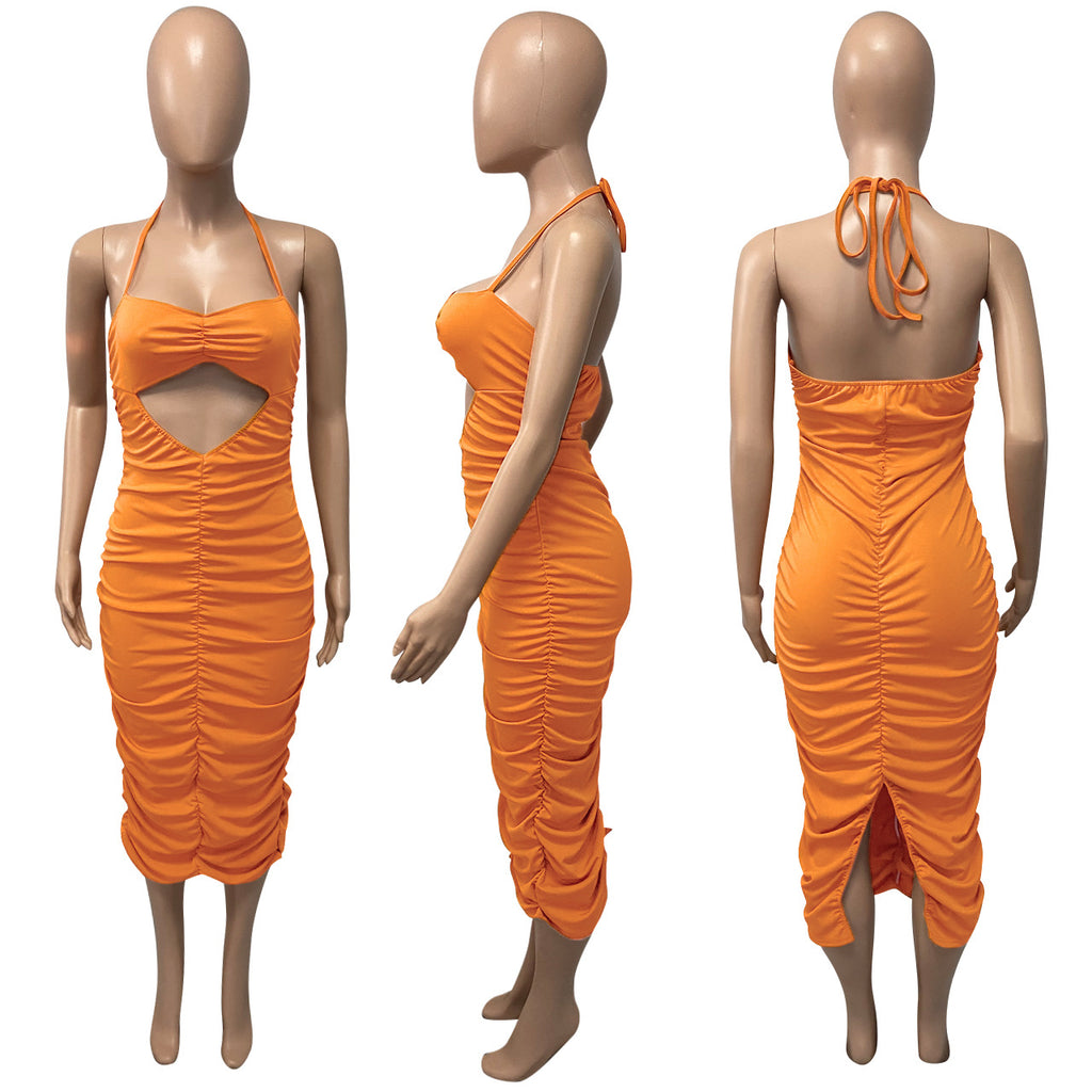 Tube Top Sexy Lace-up Pleated Slit Dress