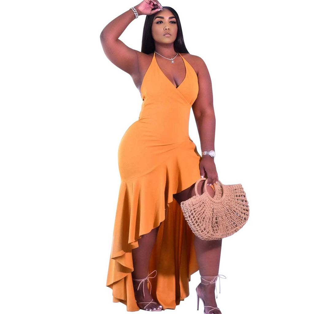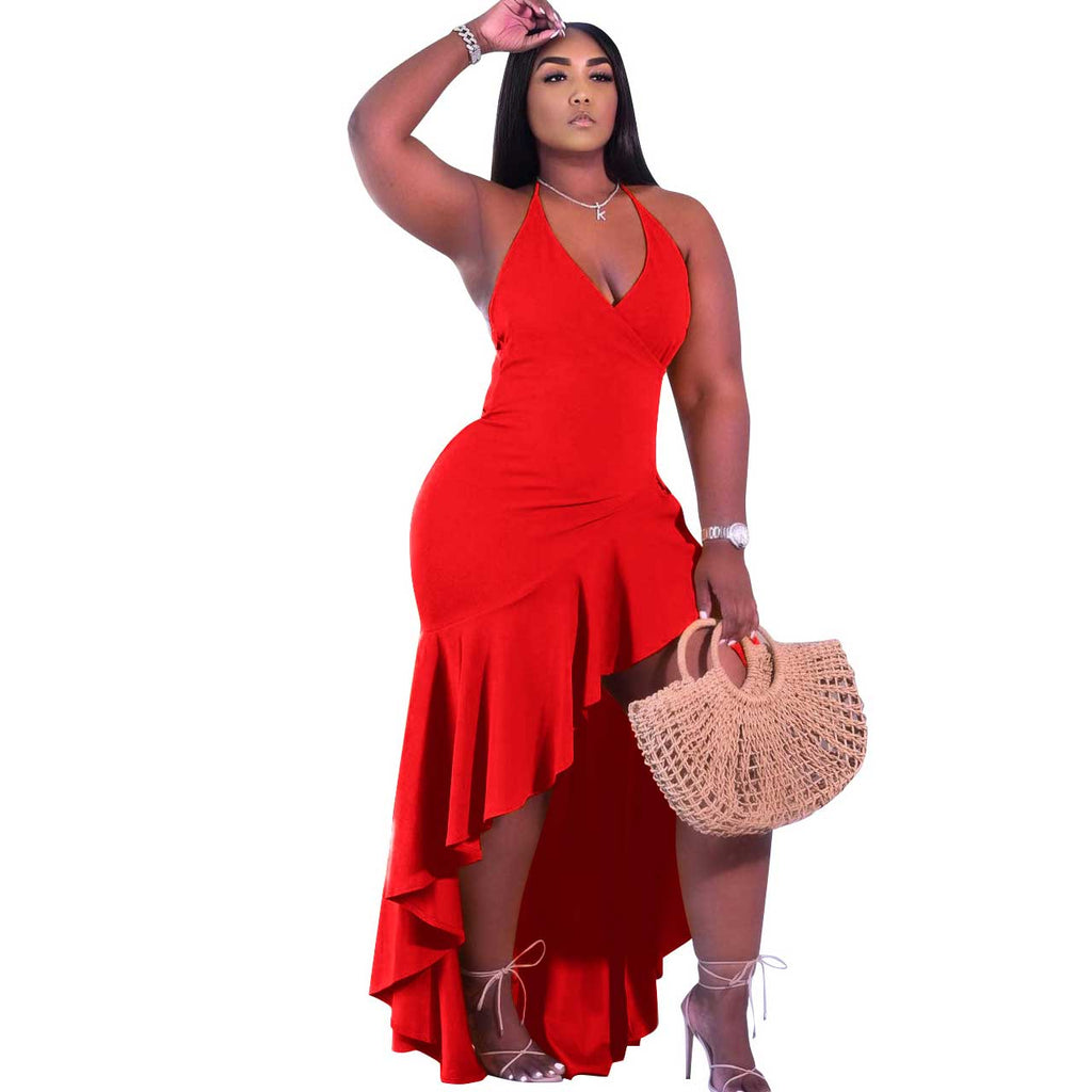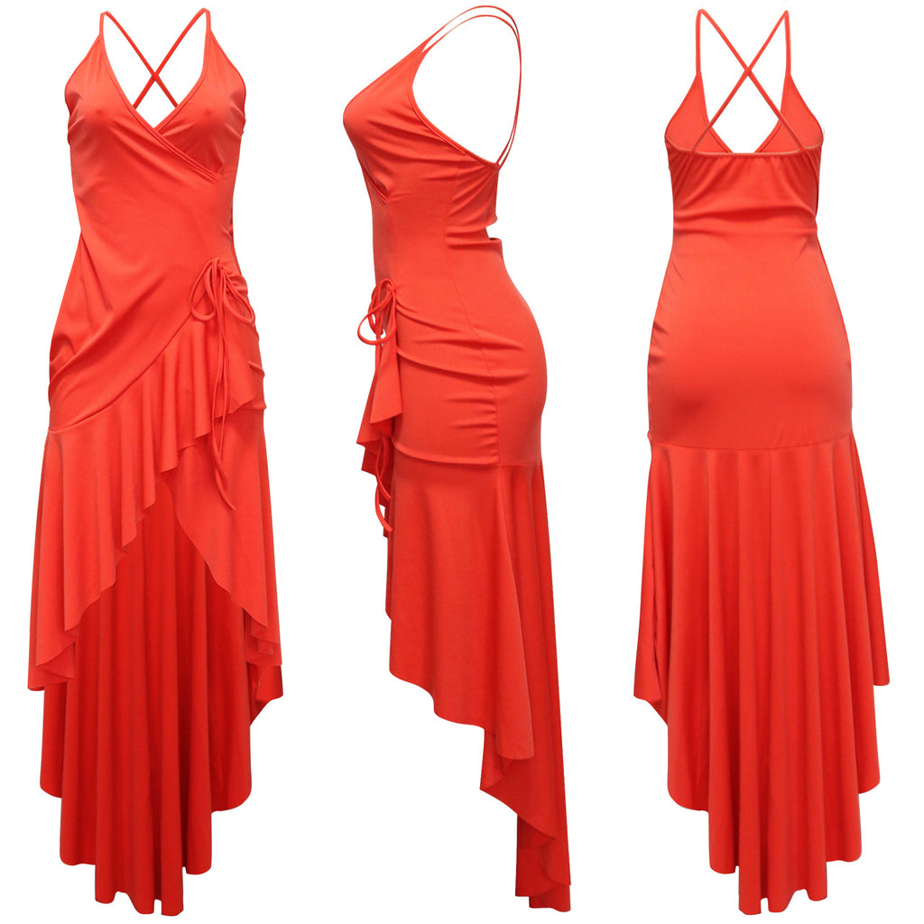 Spring and Summer Sexy Suspenders Wind Irregular Long Skirt