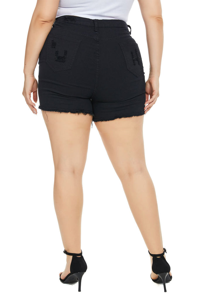 Women Plus Size Denim Shorts Ripped High Waist Jeans Summer