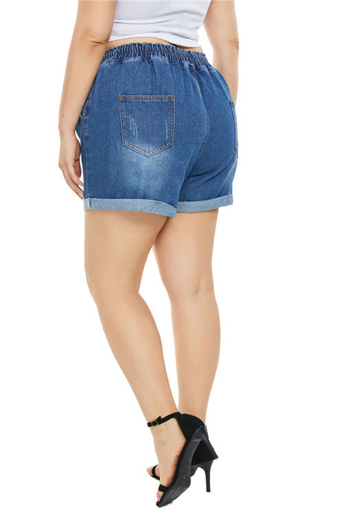 Women Plus Size Denim Shorts Summer High Waist Blue Denim Shorts for Women