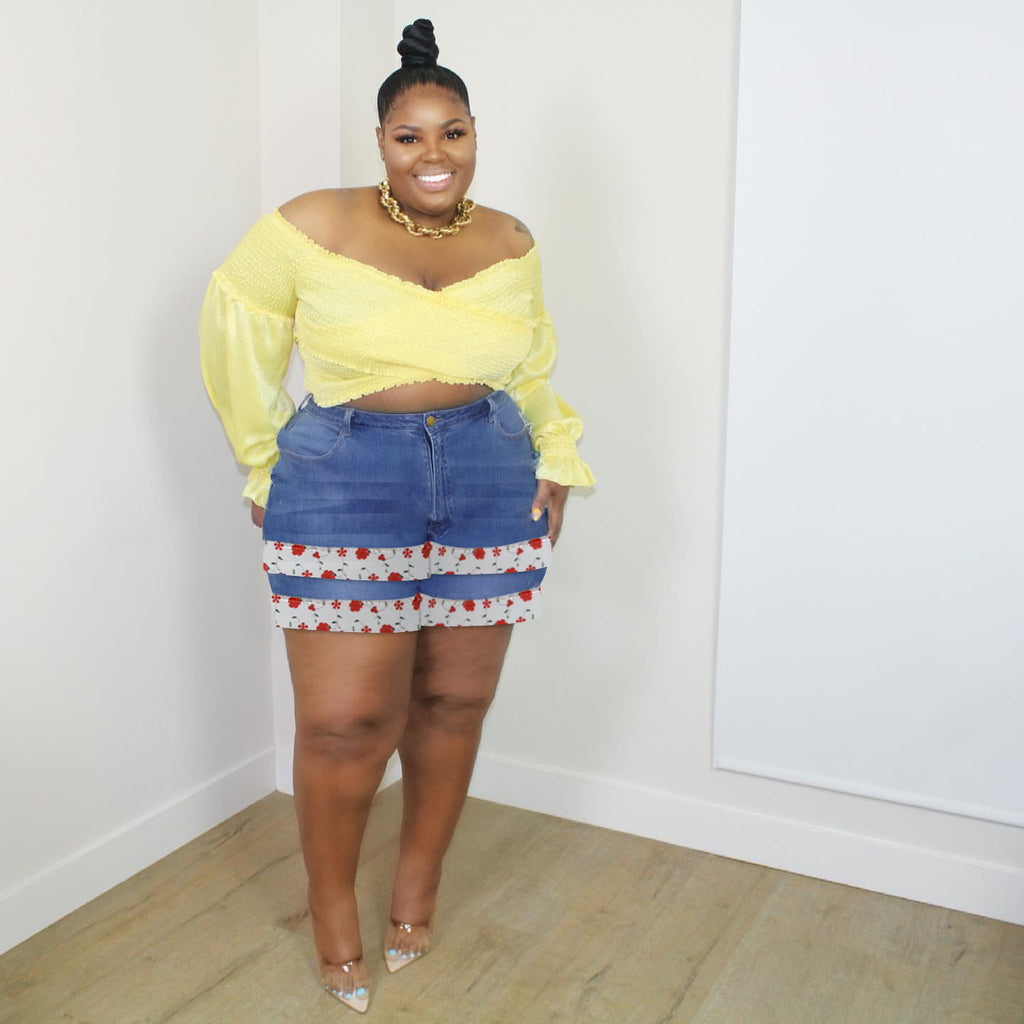 Women Plus Size Denim Shorts Slim-Fitting Patchwork Denim Shorts