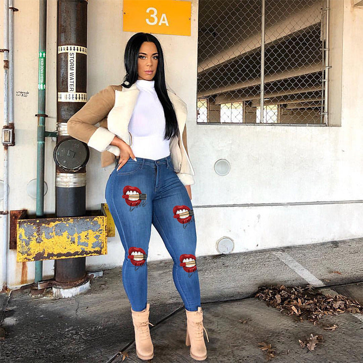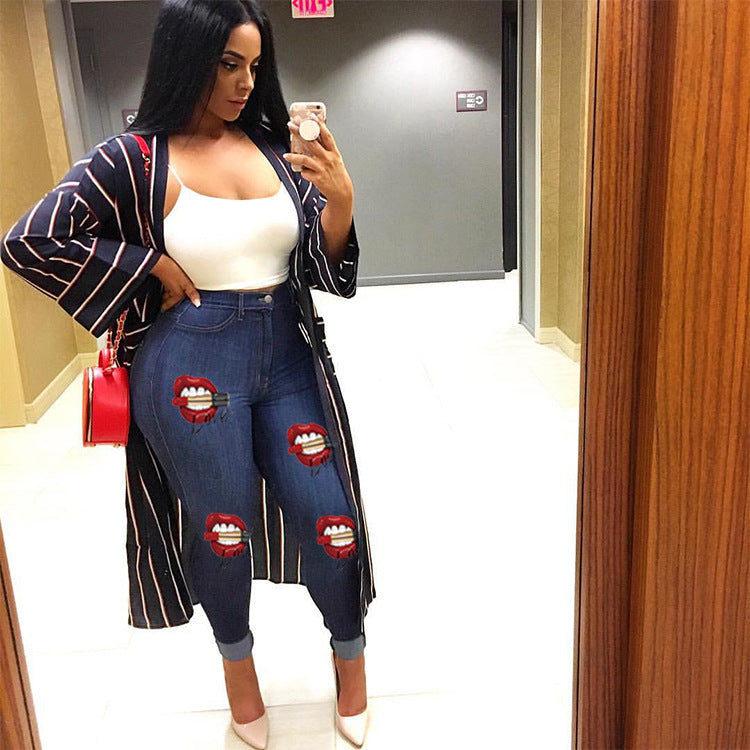 Women Plus Size Jeans High Stretch Denim Slim Fit Pencil Pants
