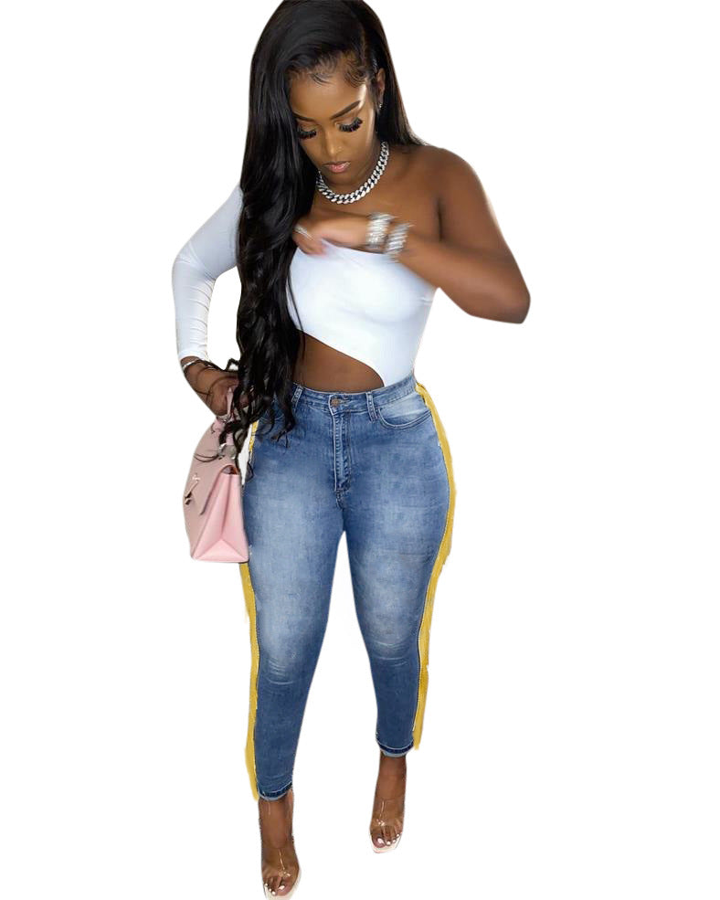Women Plus Size Jeans High Waist Slim-Fitting Patchwork Tassel Trousers