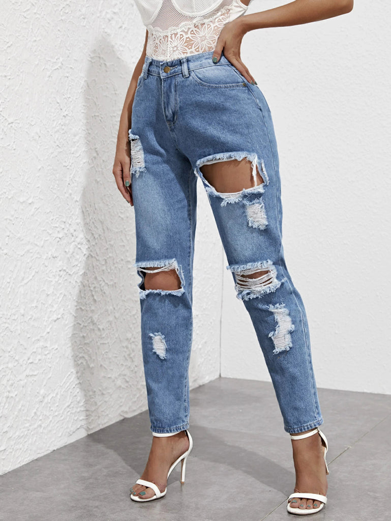 Women Plus Size Jeans Loose Ripped Sexy High Waist Jean for Women