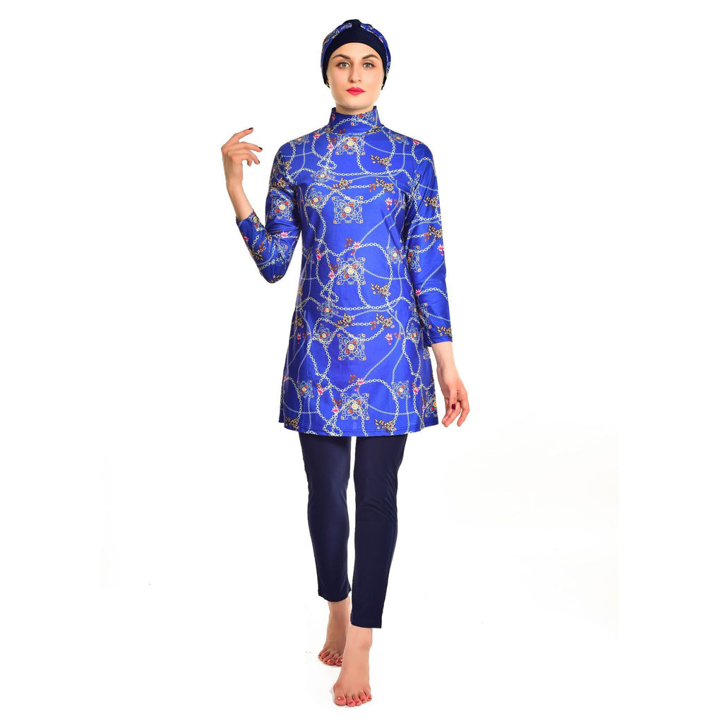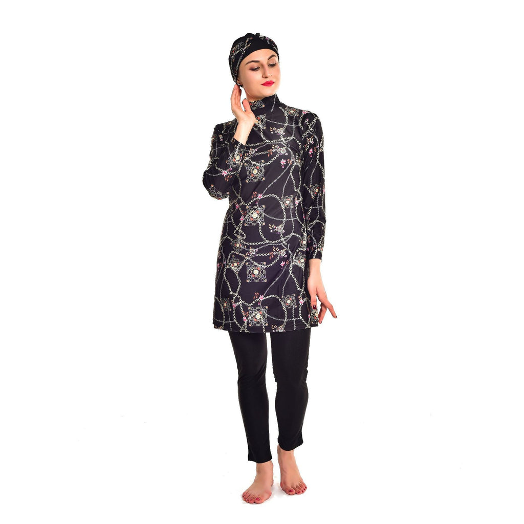 Burkini Swimwear Muslim Fashion Outfits Printed Plus Size Slim Fit Long Sleeve Swimsuit Hat