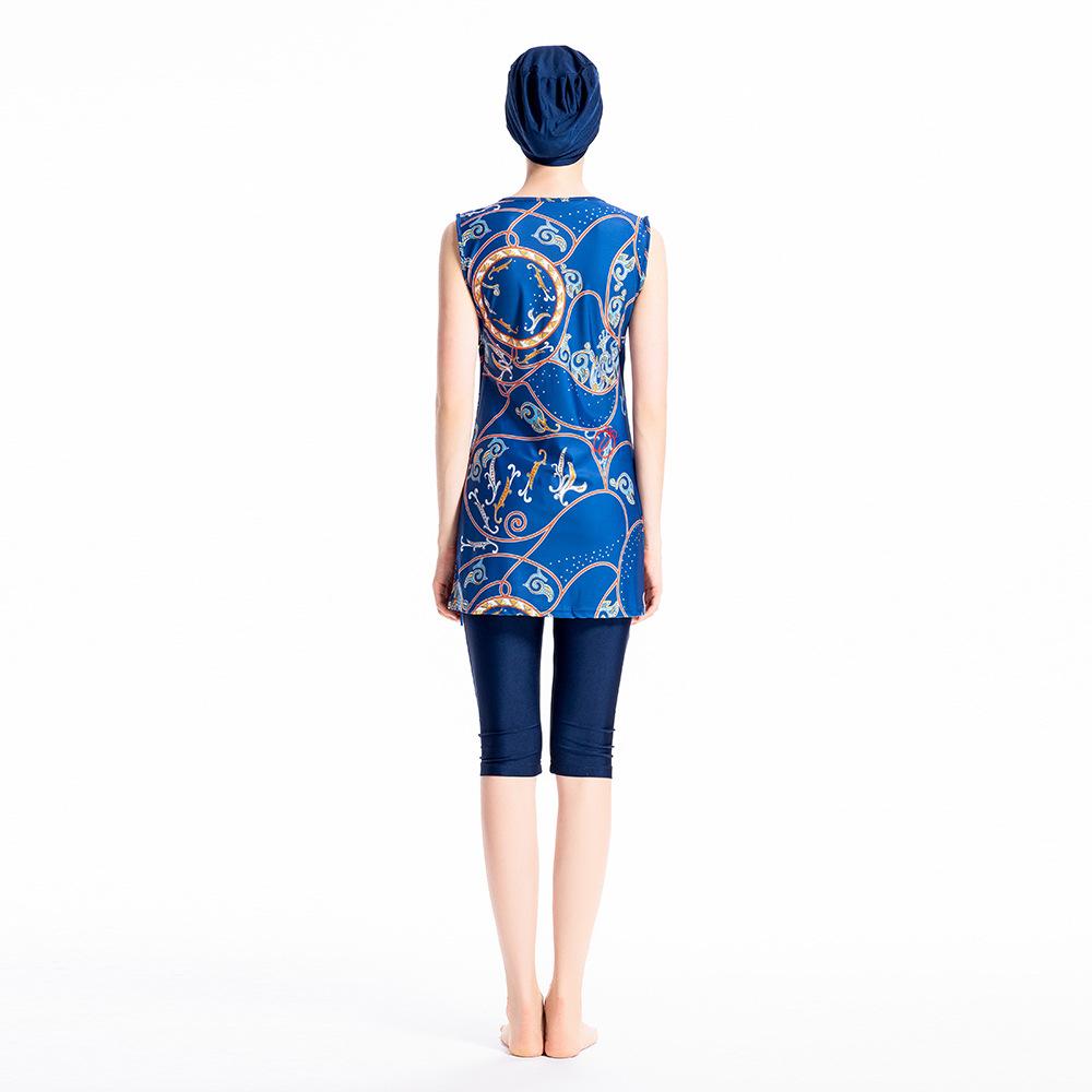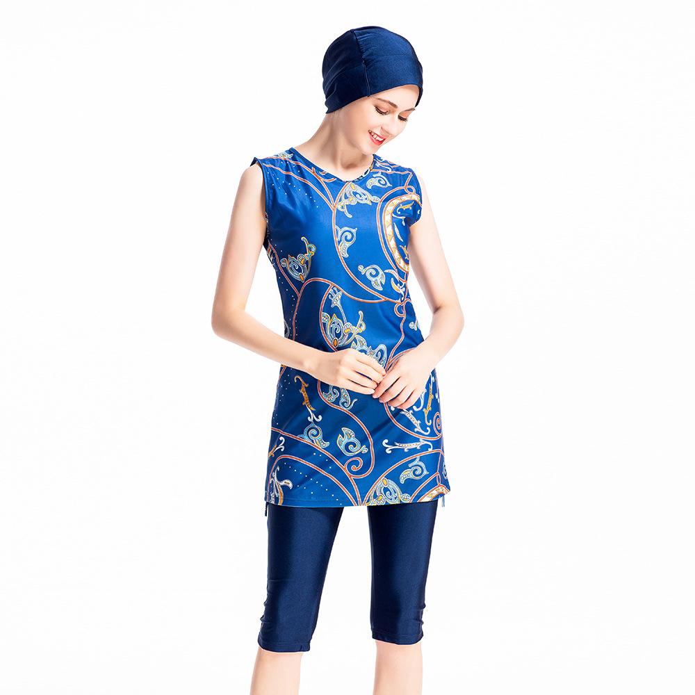 Burkini Muslim Swimwear Printed Sleeveless Swimsuit Conservative Swimwear