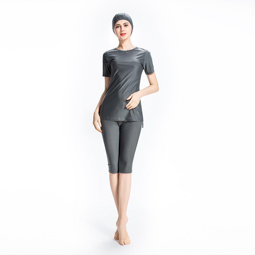 Burkini Muslim Swimwear Conservative Short Sleeve Cropped Trousers Stitching Split Swimsuit for Women
