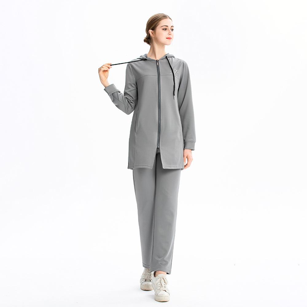 Burkini Muslim Swimwear Solid Color Hooded Zipper Pocket Loose Casual Sportswear