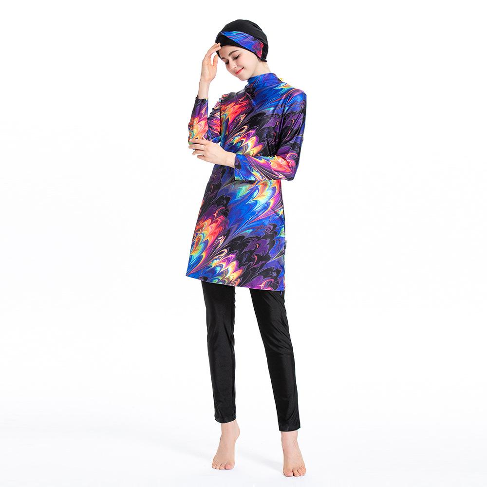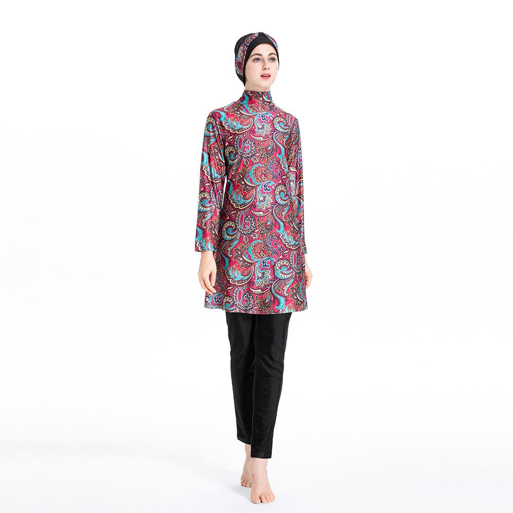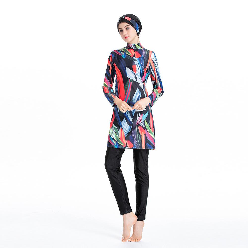 Burkini Muslim Swimwear Printed Slim Fit Three Piece Swimsuit Suit for Women