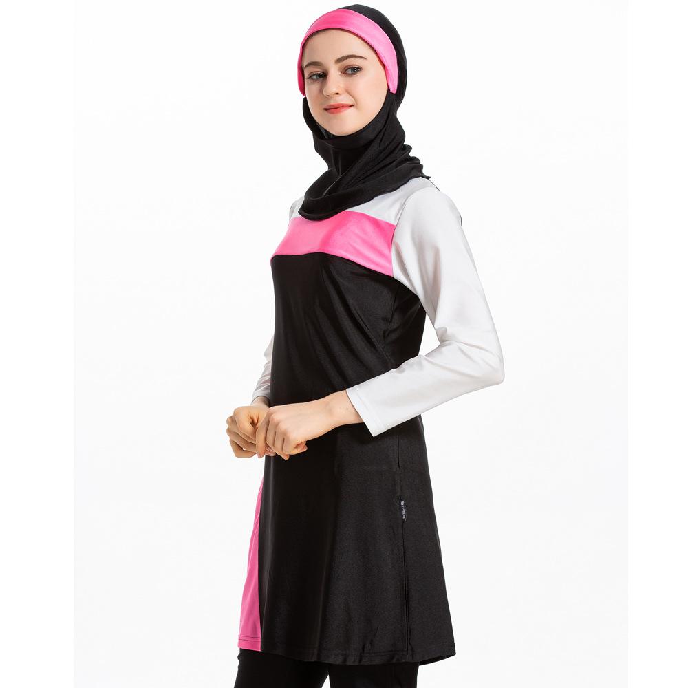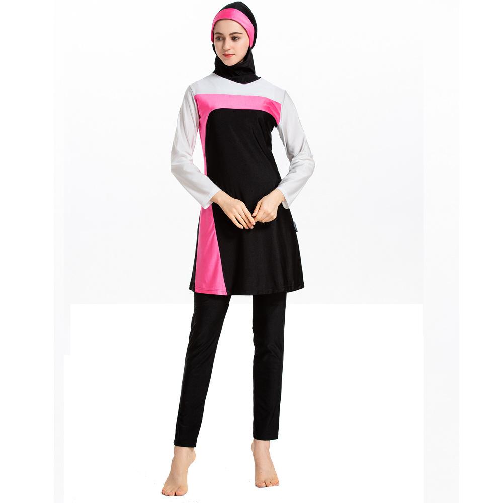 Burkini Muslim Swimwear Plus Size Color Matching Three-Piece Set Conservative Beachwear Women
