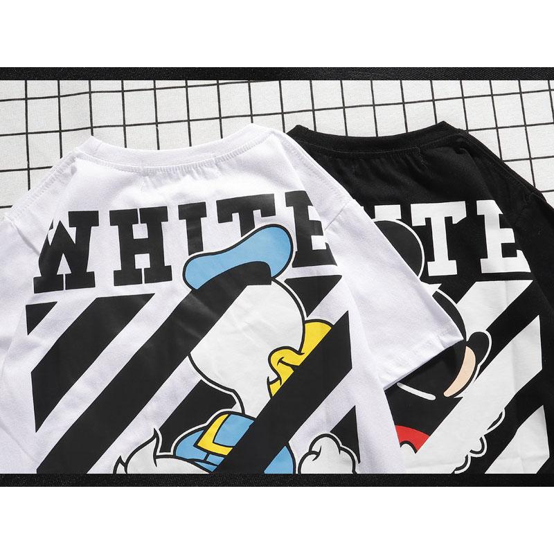Cartoon Mickey Men and Women Short Sleeve Couple Cotton Tshirt Owt Ow Donald Duck Loose Twill