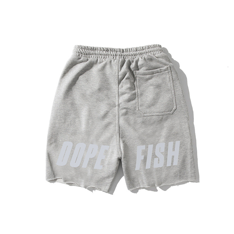Black Pants Men's Shorts Summer Reflective Letter Print Loose Straight Casual Cropped Pants Elastic Waist Sweatpants