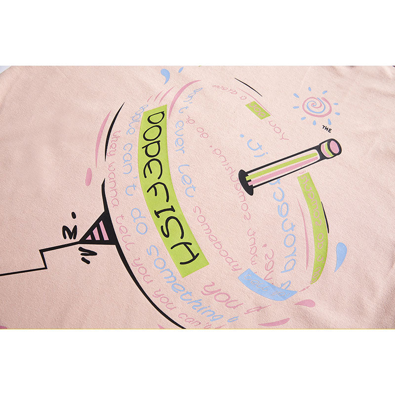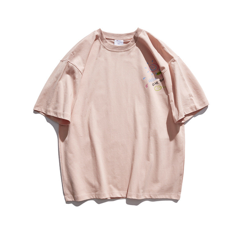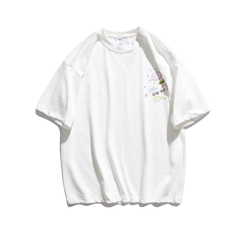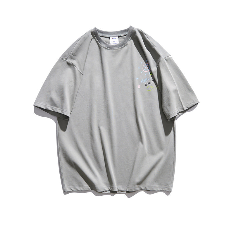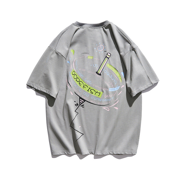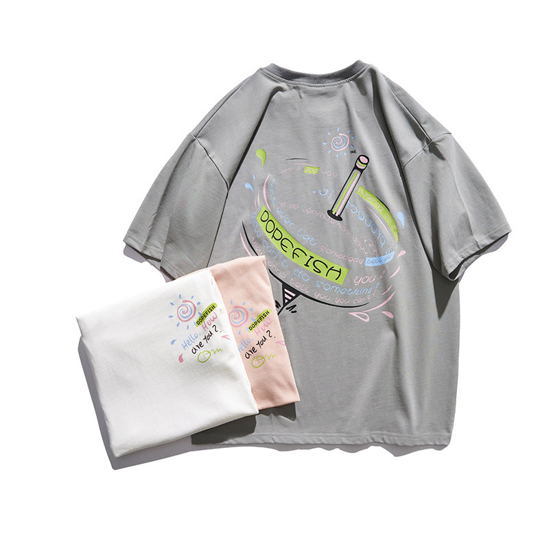 Cartoon Literary Flower Printing Short Sleeve Street Casual Loose-Fitting T-shirt Men's Fashion Half Sleeve Couples Dress Summer Wear