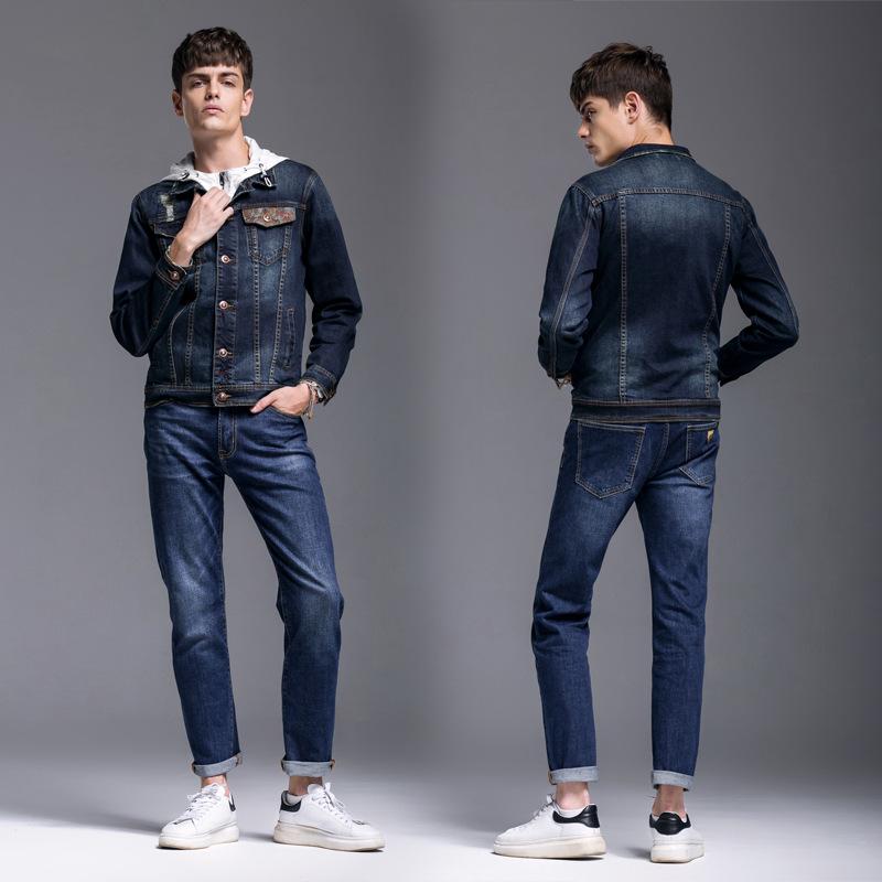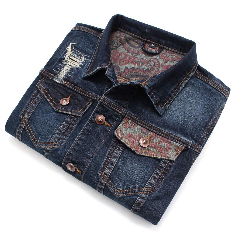 Cotton Solid Men's Denim Trucker Jacket Mens Spring Autumn Casual Slim Fit Bomber Jackets Men Jean Coat Mens Outwear Male Cotton Ripped