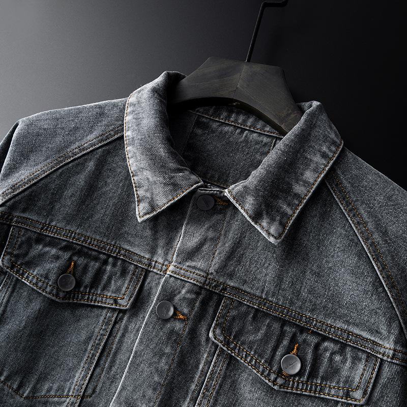 Cotton Solid Men's Denim Trucker Jacket Mens Spring Autumn Casual Slim Fit Bomber Jackets Men Jean Outwear Cowboy Gray Denim Jacket