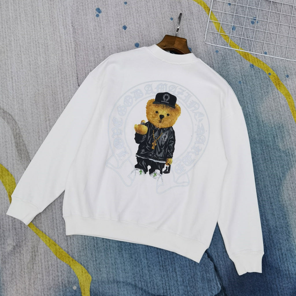 CHH Chrome Heart Sweatshirt Autumn and Winter Cartoon Bear Printed Crew Neck Sweatshirt Men's and Women's Tops