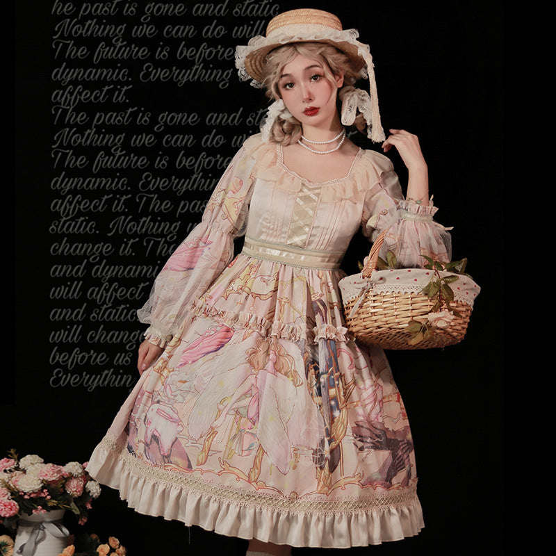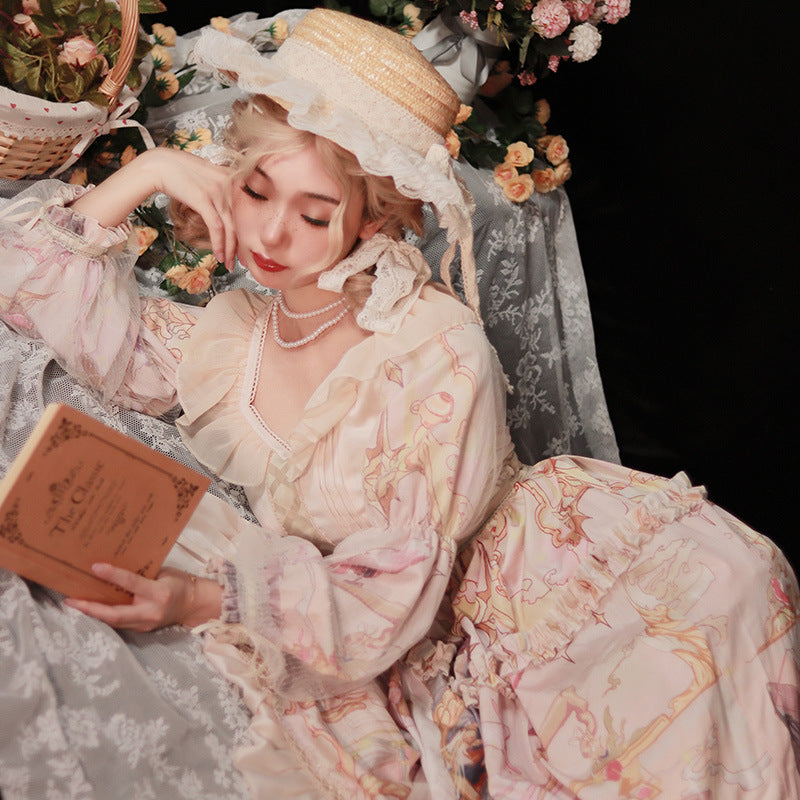 Gothic Lolita Harajuku Style Clothing Lolita Skirt Op Vintage Print Elegant CLA Series Lolita