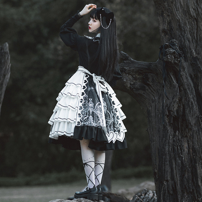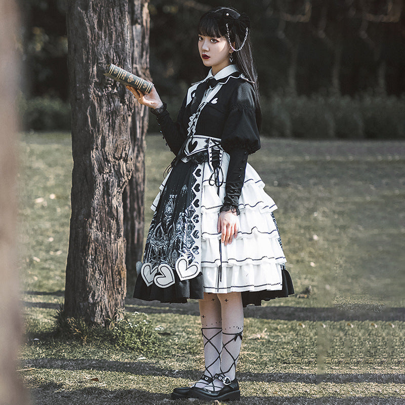 Gothic Lolita Harajuku Style Clothing Lolita Small Skirt Op Spliced Black Dress for Women