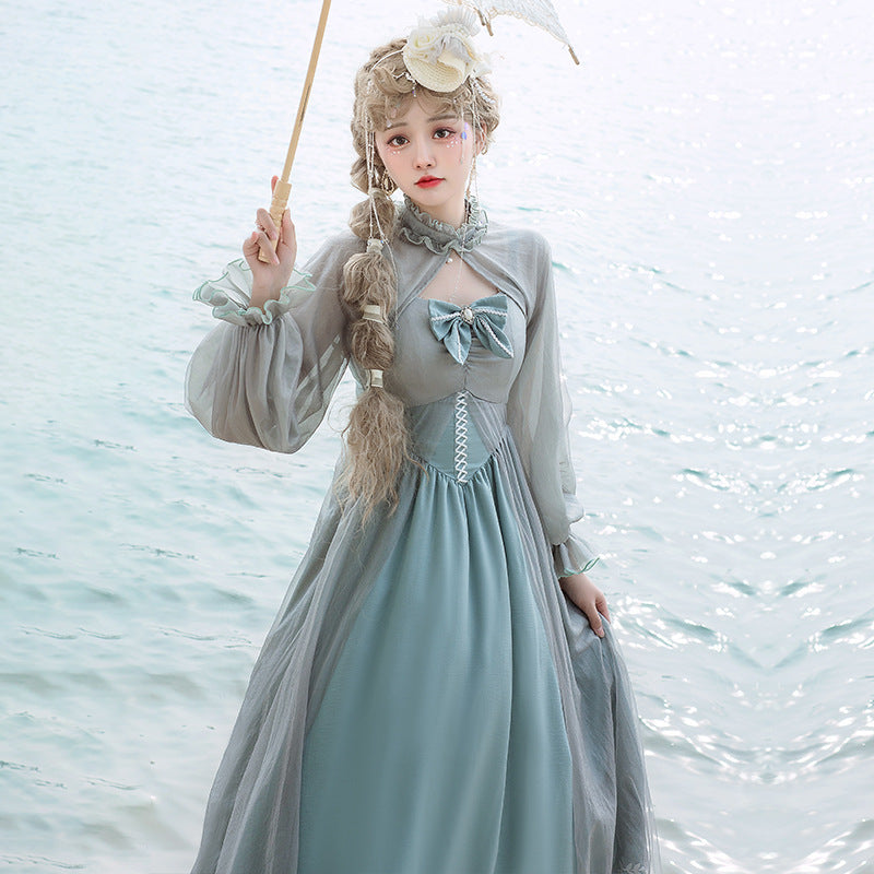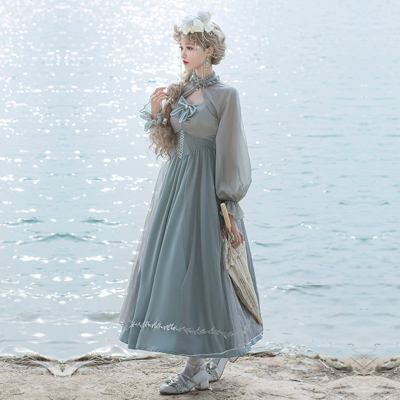 Gothic Lolita Harajuku Style Clothing Light Lolita Dress JSK Mid-High Waist CLA Chiffon Dress for Women Summer