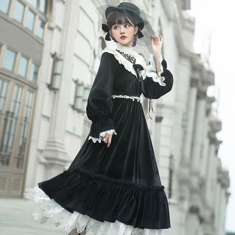 Gothic Lolita Harajuku Style Clothing Lolita Dress Autumn and Winter Chanel Op Elegant Long CLA Series Silk Velvet Light Lolita Dress