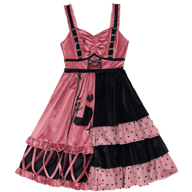 Gothic Lolita Harajuku Style Clothing Lolita Winter Skirt Explosion Berries JSK Retro Color-Matching Dress Autumn and Winter Full Set