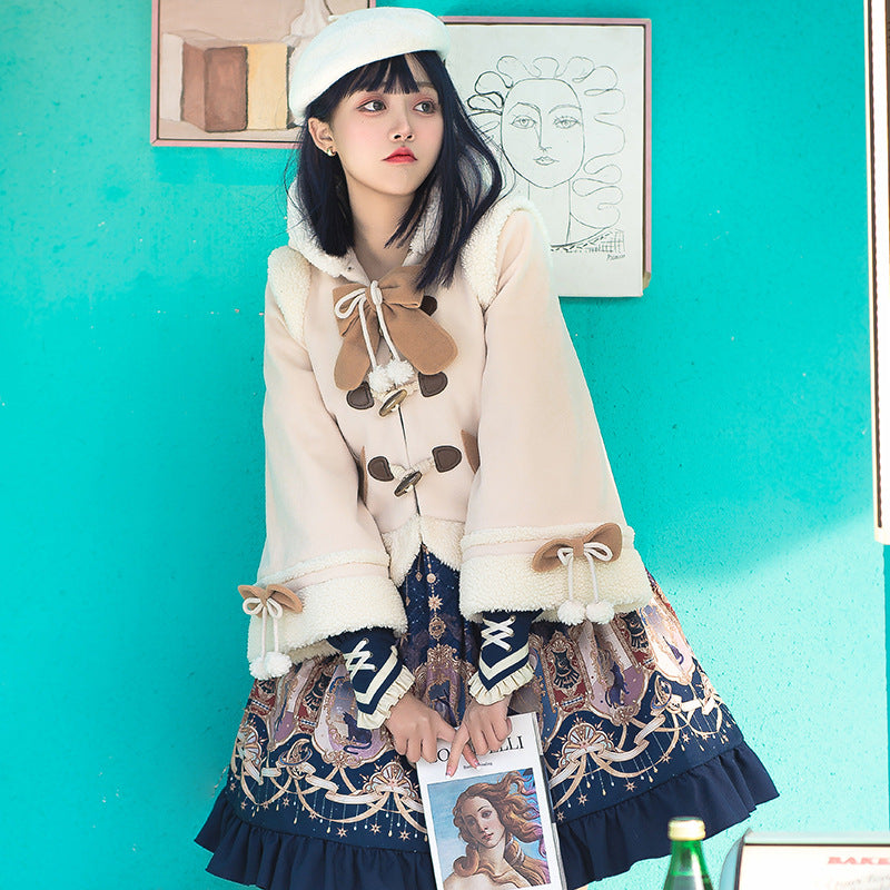 Gothic Lolita Harajuku Style Clothing Lolita Autumn and Winter Cape Coat Thickened Cloth New Year Coat
