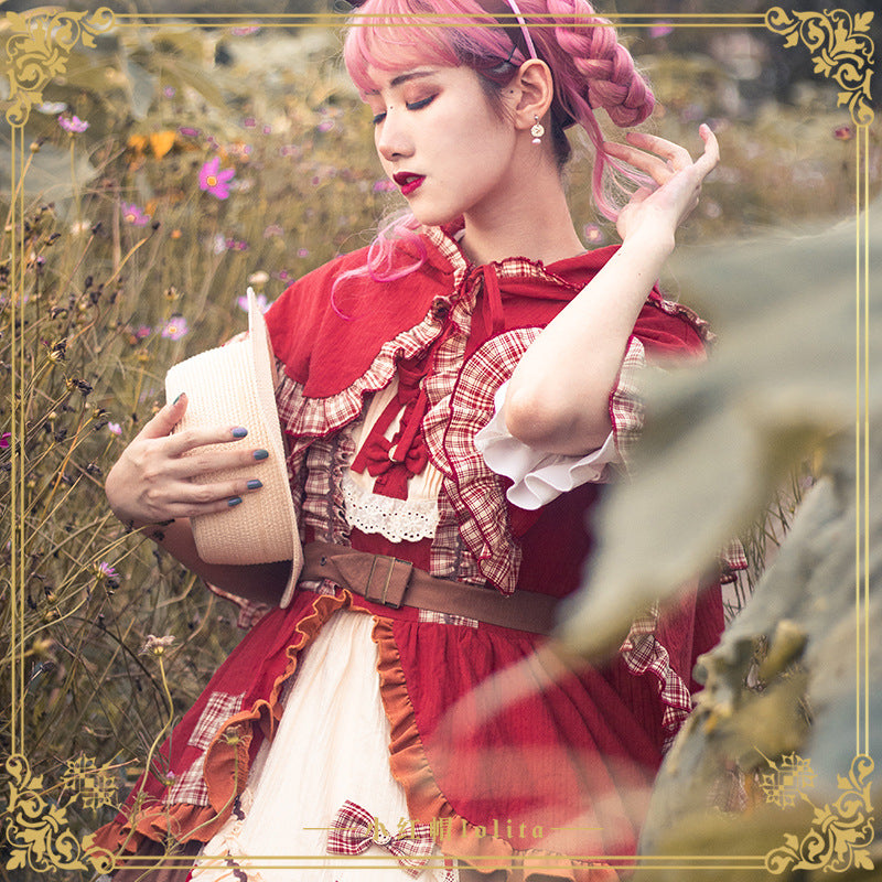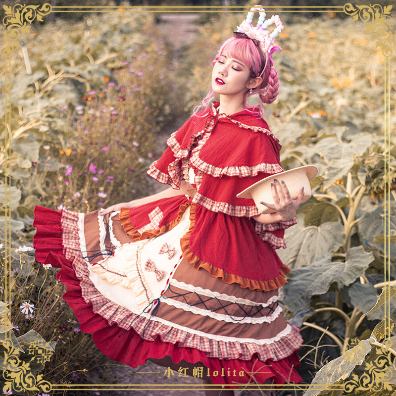 Gothic Lolita Harajuku Style Clothing Little Red Riding Hood JSK Cloak Pastoral Style Lolita Small Skirt