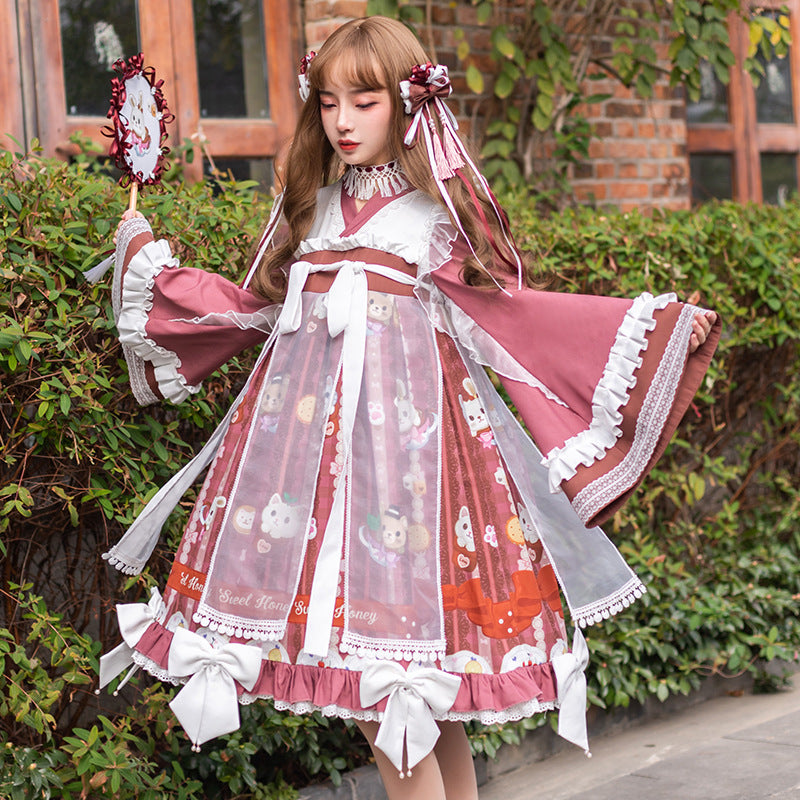 Gothic Lolita Harajuku Style Clothing Coffee Cup Miss Animal Op Lolita Dresses