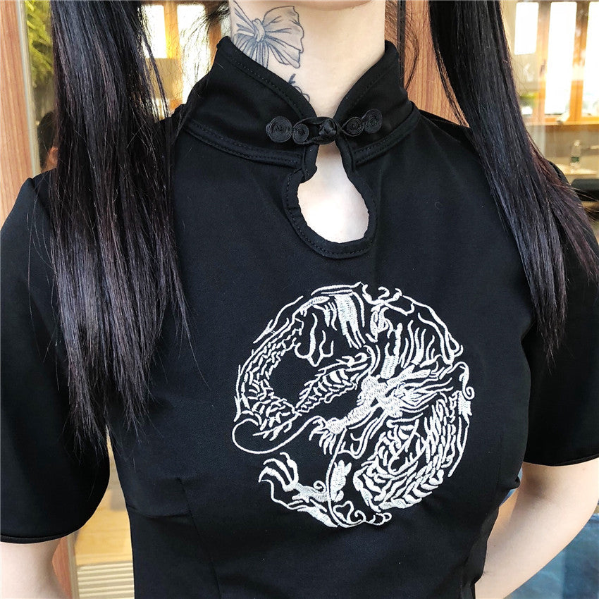 Gothic Lolita Harajuku Style Clothing Harajuku Style Retro Dragon Pattern Embroidered Cheongsam Dress Skirt