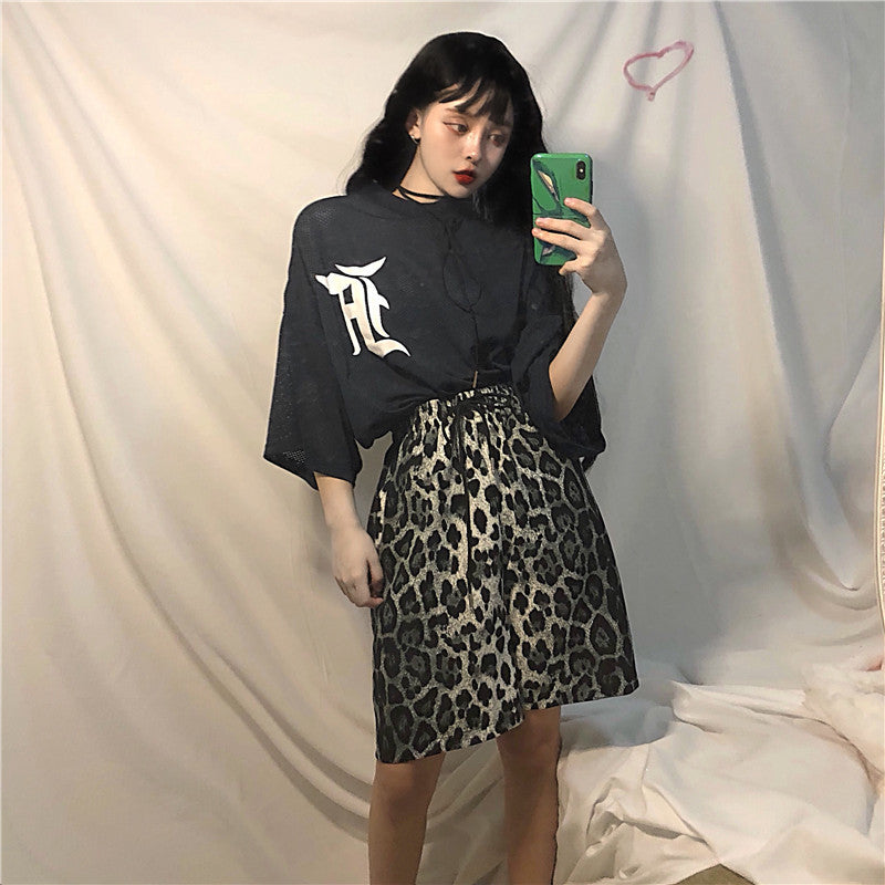Gothic Lolita Harajuku Style Clothing BF Style Loose Printed Mesh Cloth T-shirt Leopard Print Shorts