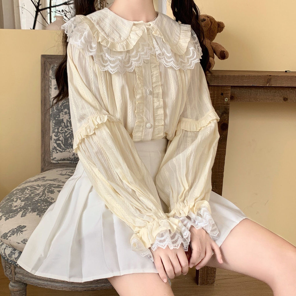 Gothic Lolita Harajuku Style Clothing Doll Collar Lace Solid Color Lolita Inner Shirt