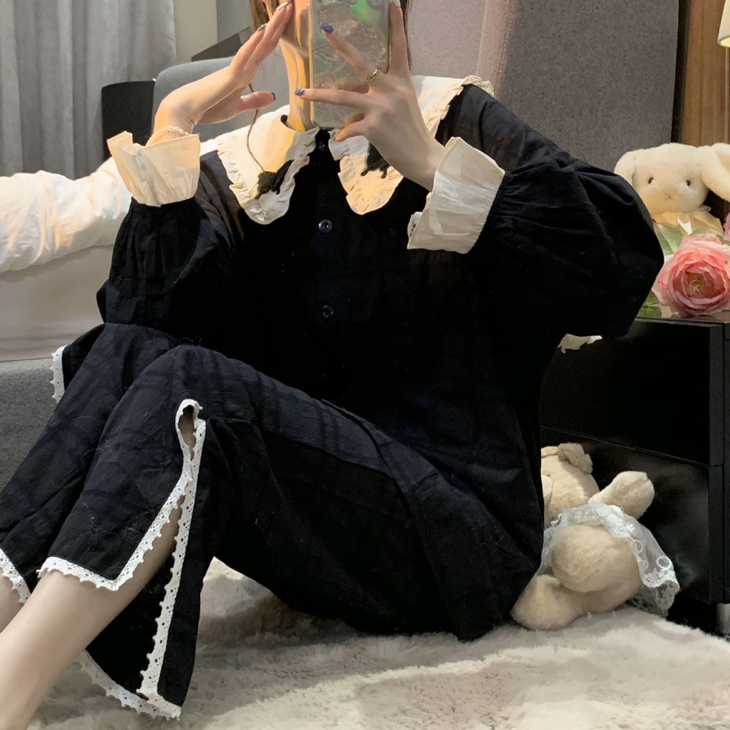 Gothic Lolita Harajuku Style Clothing Autumn Doll Collar Jacquard Cotton Home Wear