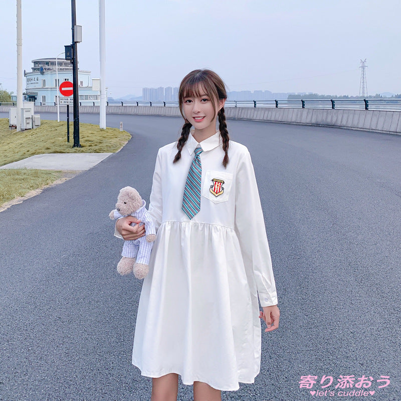Gothic Lolita Harajuku Style Clothing Girl Long Sleeve Dress Cute Solid Color Maxi Dress