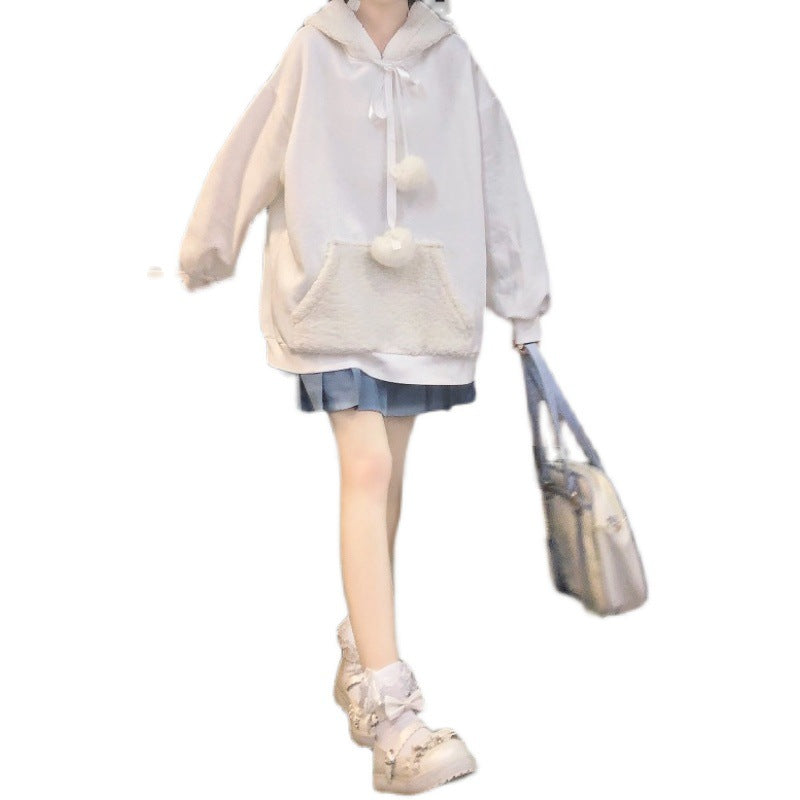 Gothic Lolita Harajuku Style Clothing Autumn Lambswool Colorblock Hood Loose Ear Sweater