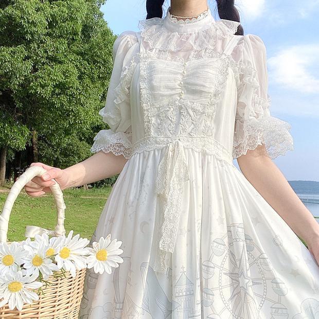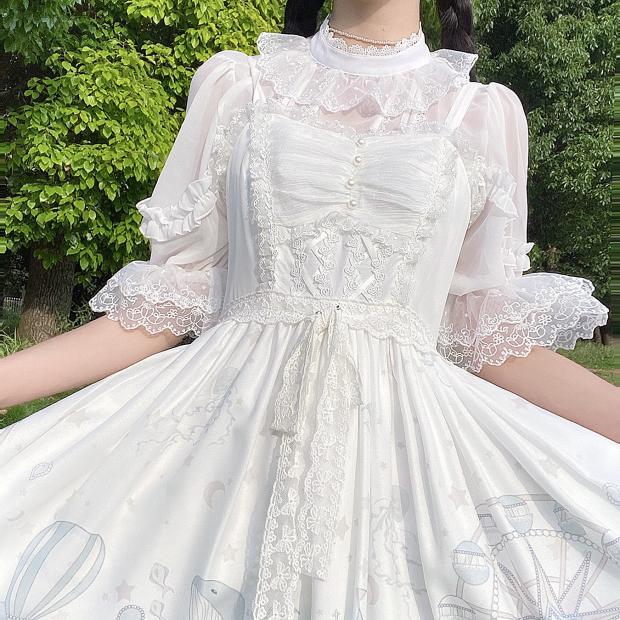 Gothic Lolita Harajuku Style Clothing Chiffon Cute Lace Lined Lolita Chiffon Half Sleeve Shirt
