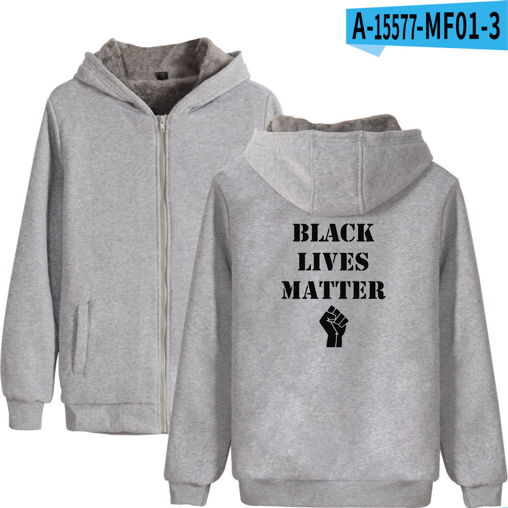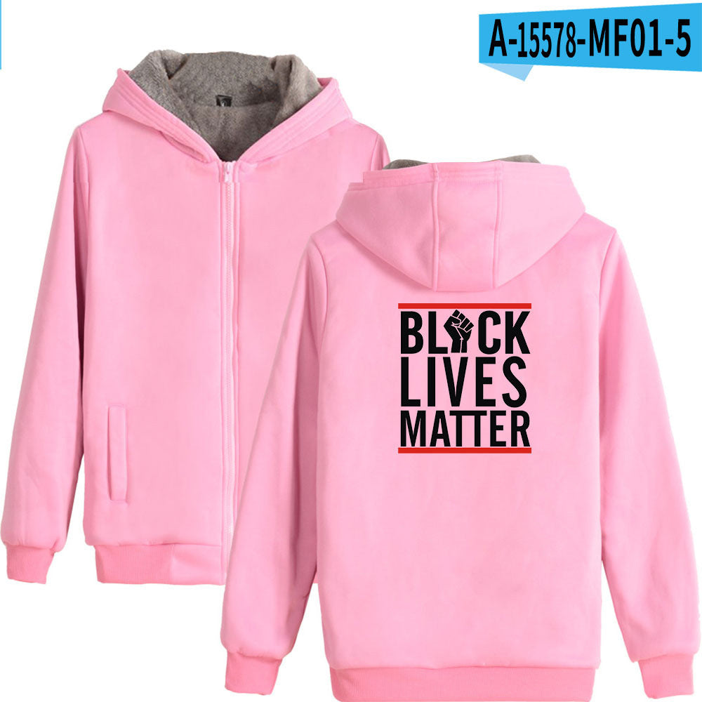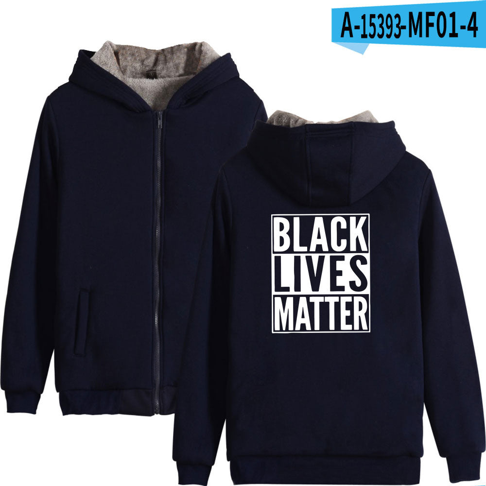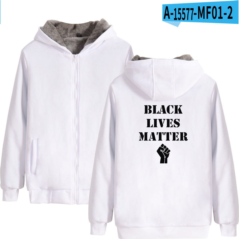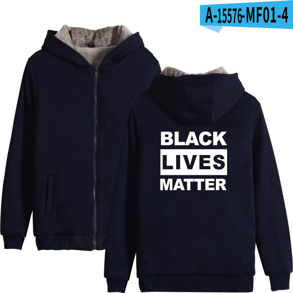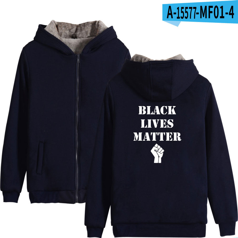 Black Lives Matter Dressing Winter Fleece-Lined Thickened Hooded Zipper Sweatshirt