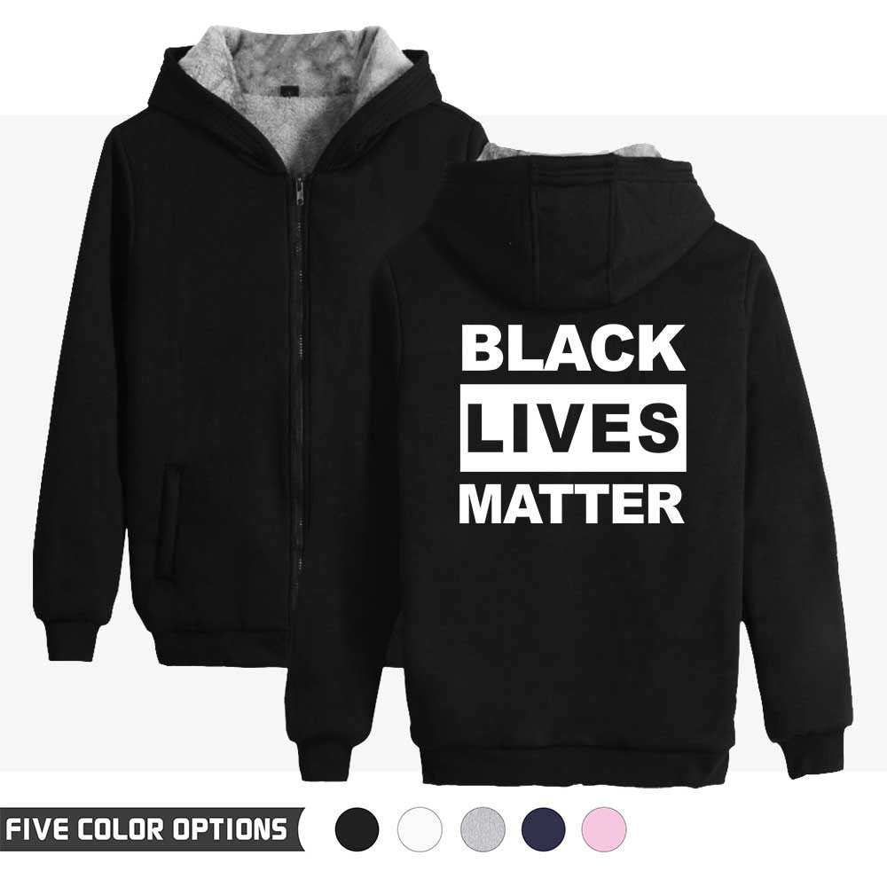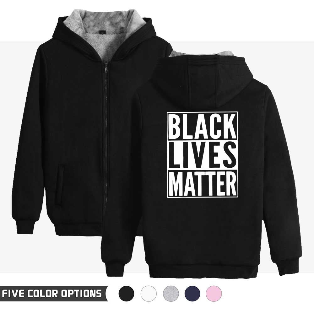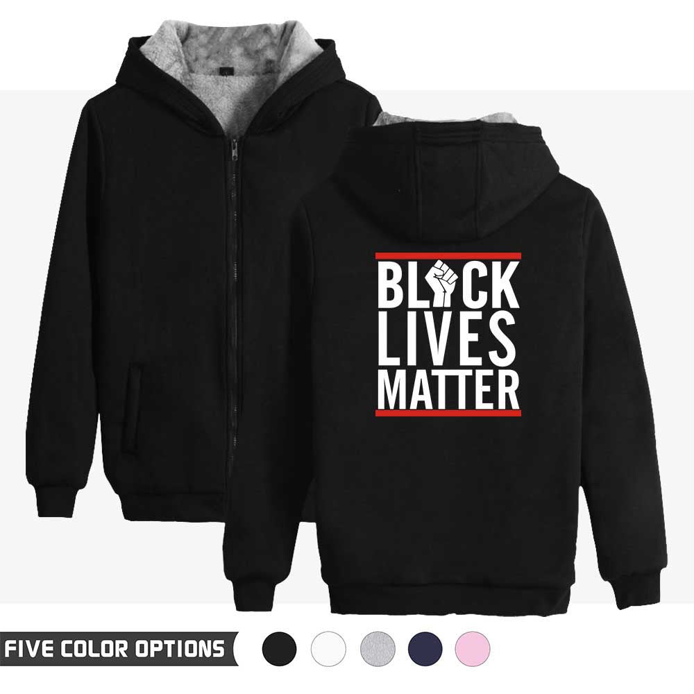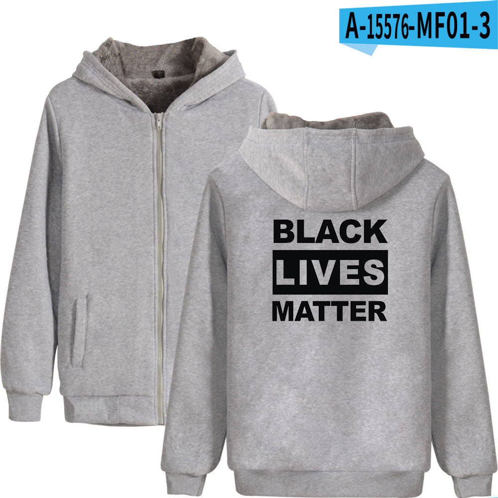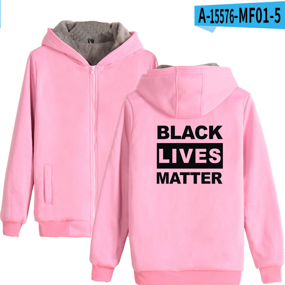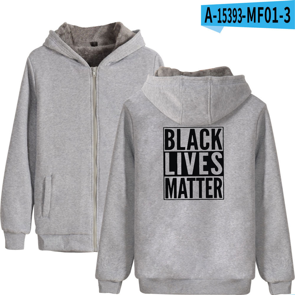 Black Lives Matter Dressing Winter Fleece-Lined Thickened Hooded Zipper Sweatshirt
