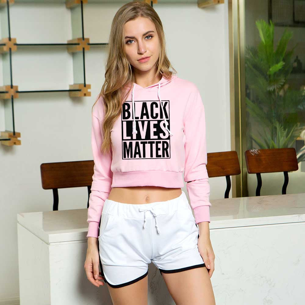 Black Lives Matter Dressing Printed Girls Fashion Navel-Exposed Hooded Sweater