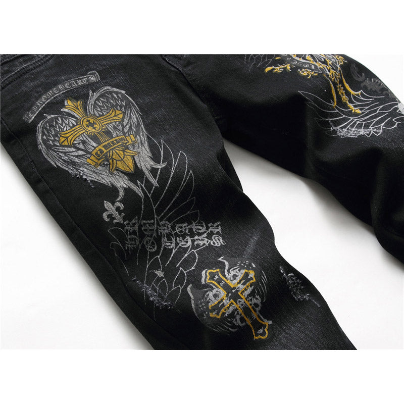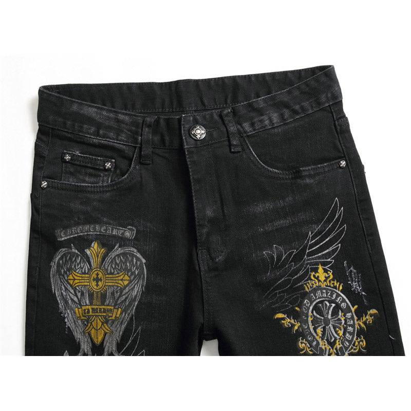 CHH Chrome Hearts Jeans Men's Jeans Printed Black Slim Pants