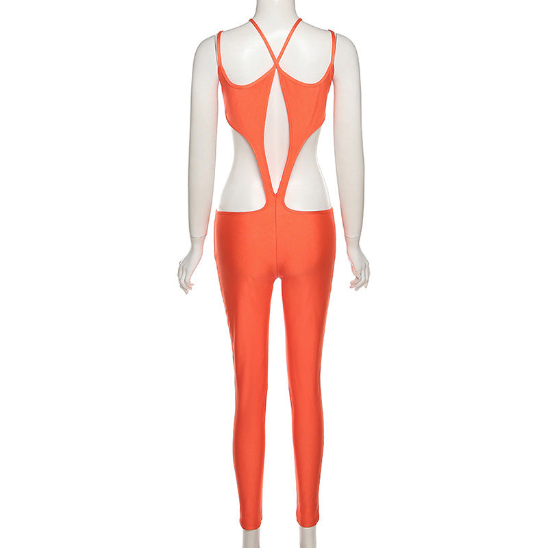 Fall Hollow Backless Sling High Waist Tight Sports Fitness Jumpsuit