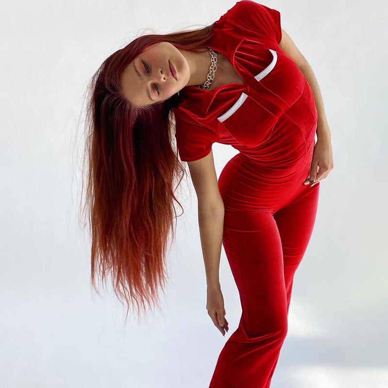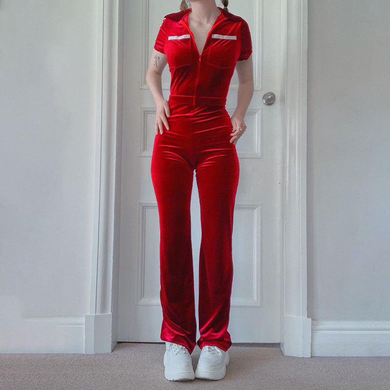 Fall Women's Clothing Fashion Velvet High Waist Hip Lift Tight Straight Casual One-Piece Trousers for Women