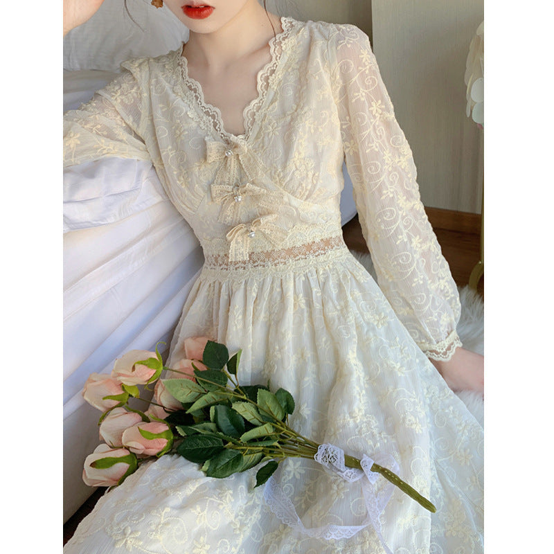 Fairy Dress Pearl Butterfly Big Swing Hollow Heart Machine Midriff Outfit Sweet French Dress