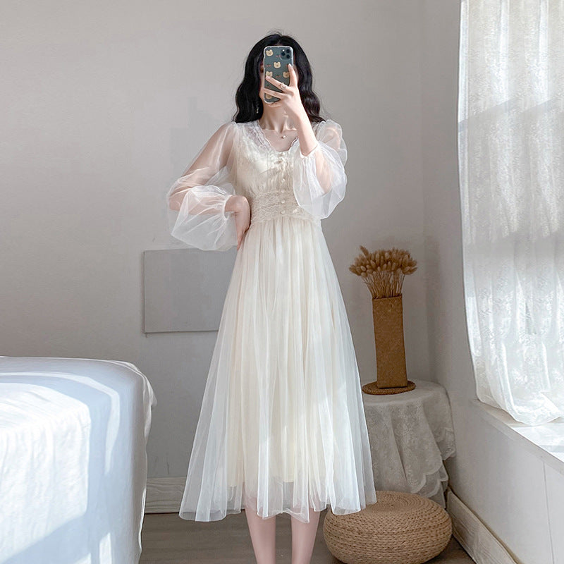 Fairy Dress French Retro Fairy Mesh Dress Super Fairy Two-Piece Set