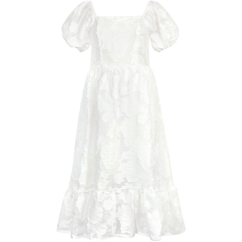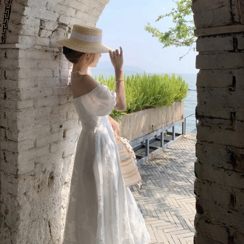 Fairy Dress French Style Temperament White Dress Women's Summer Retro Gentle Style Jacquard Puff Sleeve