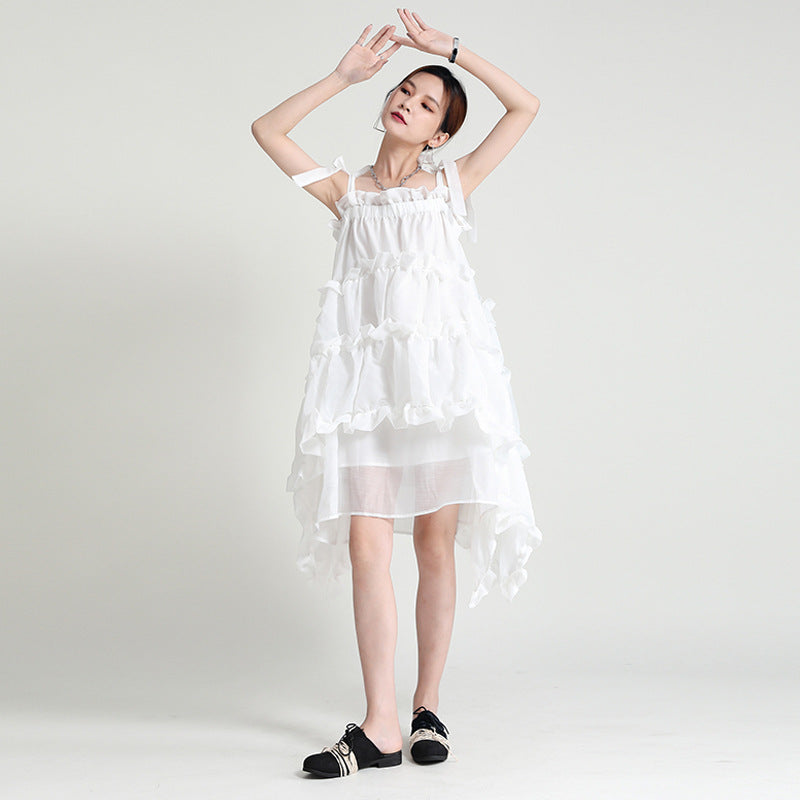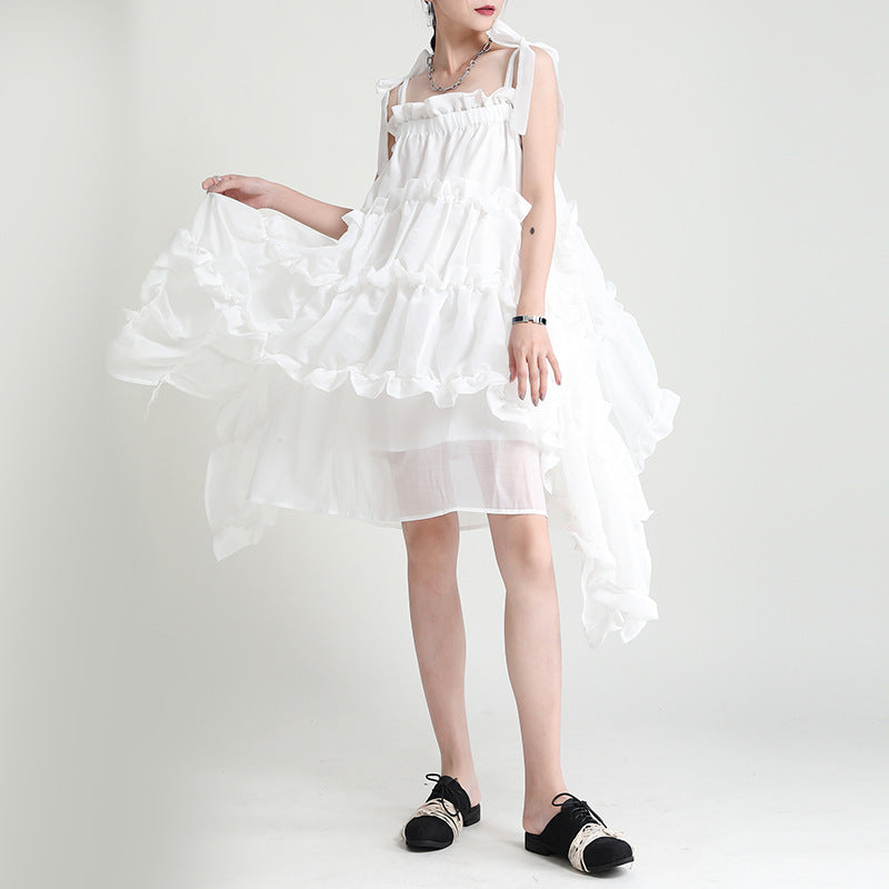 Fairy Dress Summer Sling Irregular Cake Dress Mesh Lace Pleated Fairy First Love Dress
