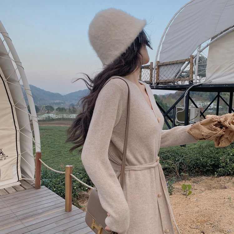 Fairy Dress Knitted Dress for Women Autumn and Winter Lacing French Style V-neck Inner Wear Bottoming Skirt Fairy Skirt