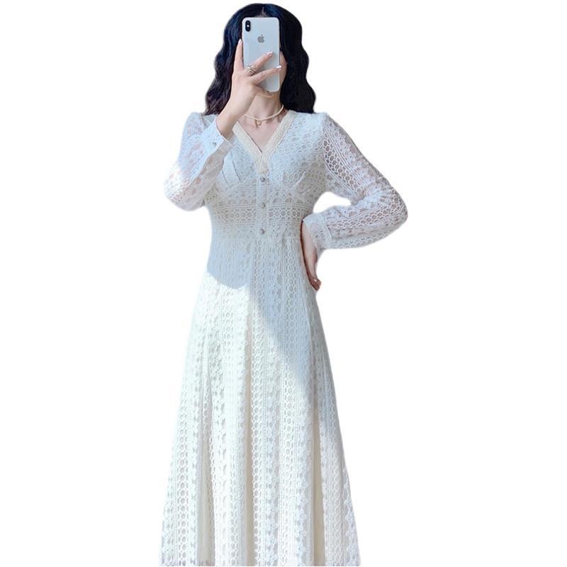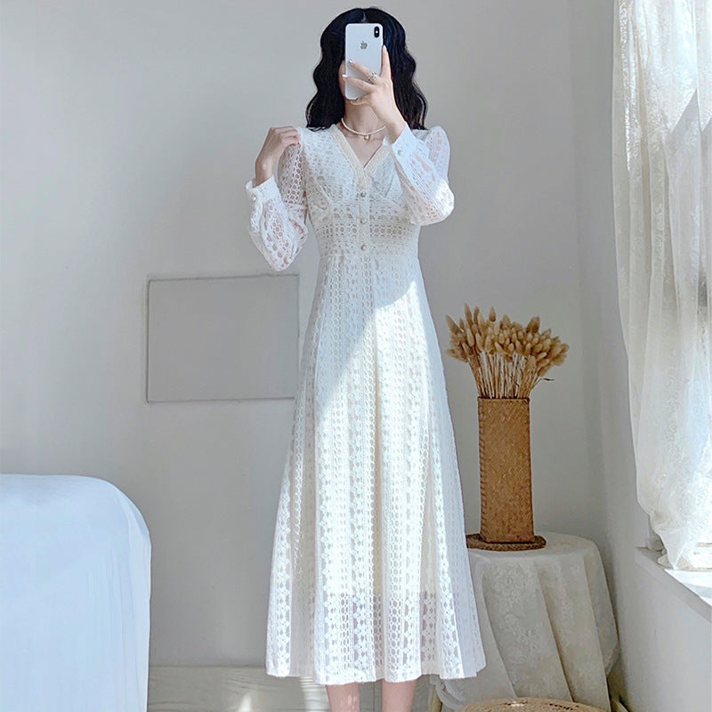 Fairy Dress Early Autumn Sweet Lace Dress Women French Style Cinched Slimming Long Dress